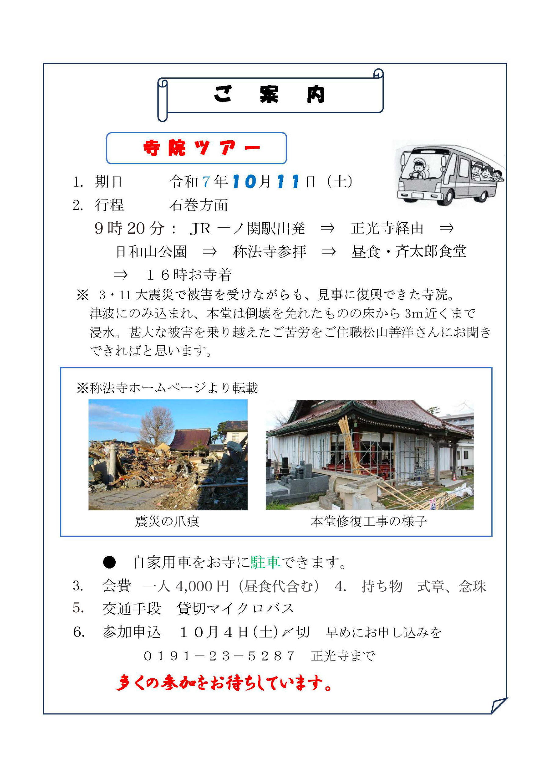 ①寺院ツアー出発時刻 : 9時20分(JR一ノ関駅)
